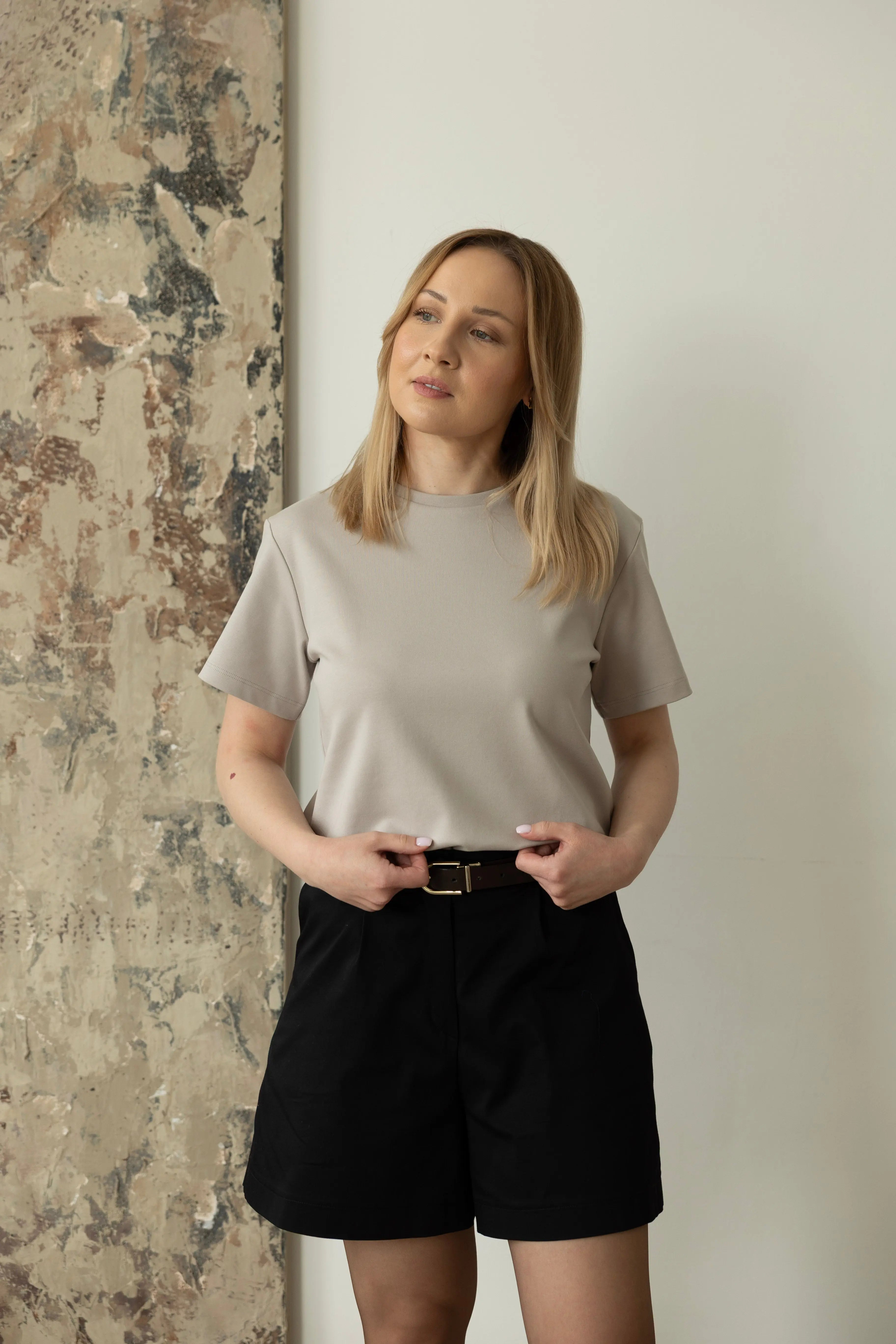 • Detale: Minimalistyczne wykończenie i subtelne szwy, które dodają szortom elegancji i sprawiają, że pasują do różnych okazji.