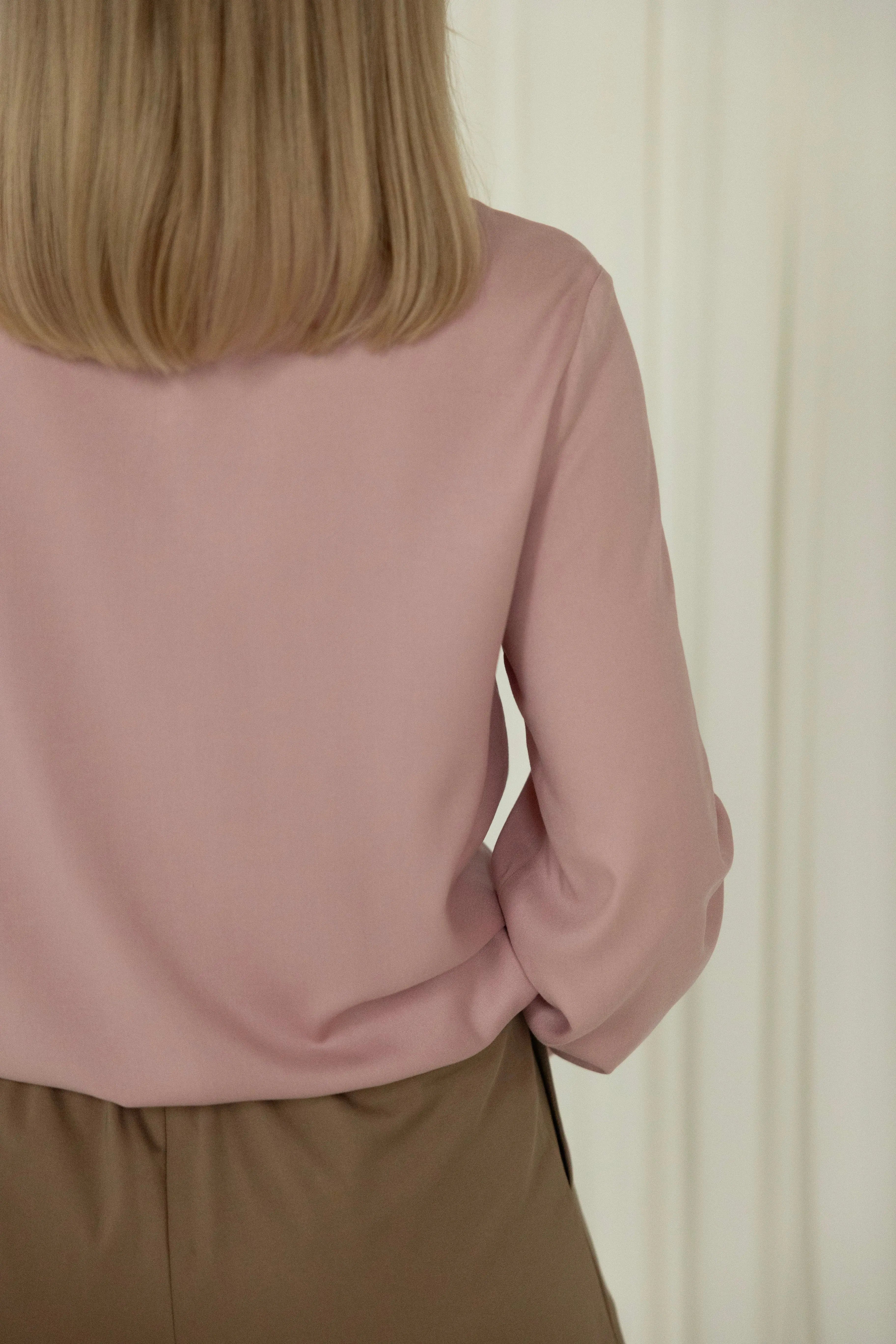 Ten piękny odcień pudrowego różu to kwintesencja subtelnej elegancji. Wykonana z najwyższej jakości włoskiej wiskozy, jest przyjemna w dotyku i pięknie układa się na sylwetce. Posiada zakryte guziki dla minimalistycznego wyglądu, gładki tył oraz rękawy wykończone delikatnymi marszczeniami, które dodają kobiecego uroku.