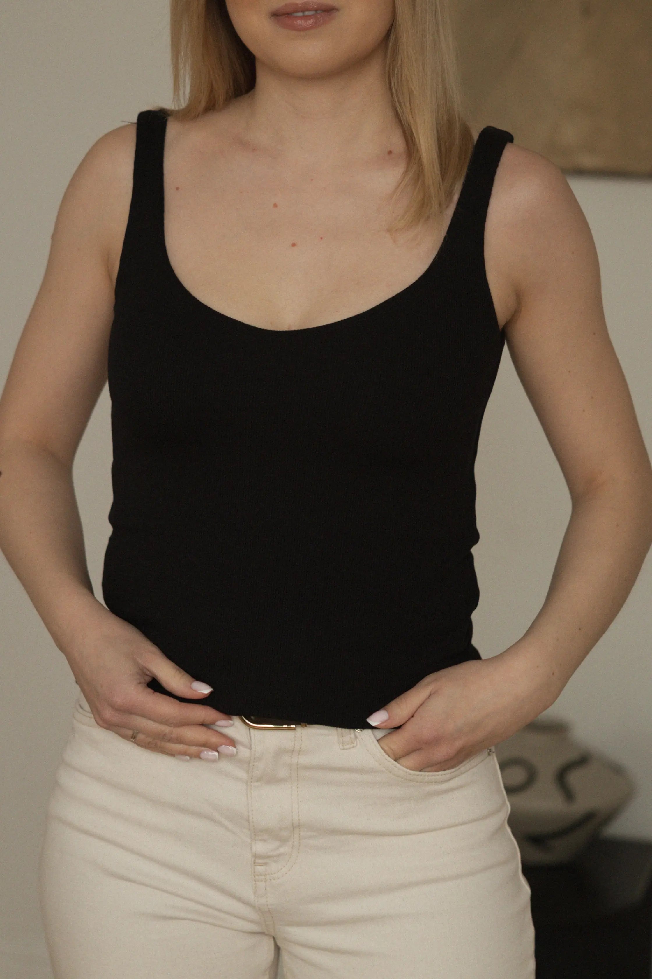 Top No. 2 Noir to wybór idealny zarówno do codziennych, jak i bardziej eleganckich stylizacji. Jego głęboka czerń i ponadczasowy design sprawiają, że świetnie komponuje się z luźnymi spodniami, eleganckimi spódnicami czy dżinsami, a w połączeniu z marynarką stworzy szykowny look na wieczorne wyjście. Niezależnie od okazji, jego minimalistyczny charakter nigdy nie wyjdzie z mody.