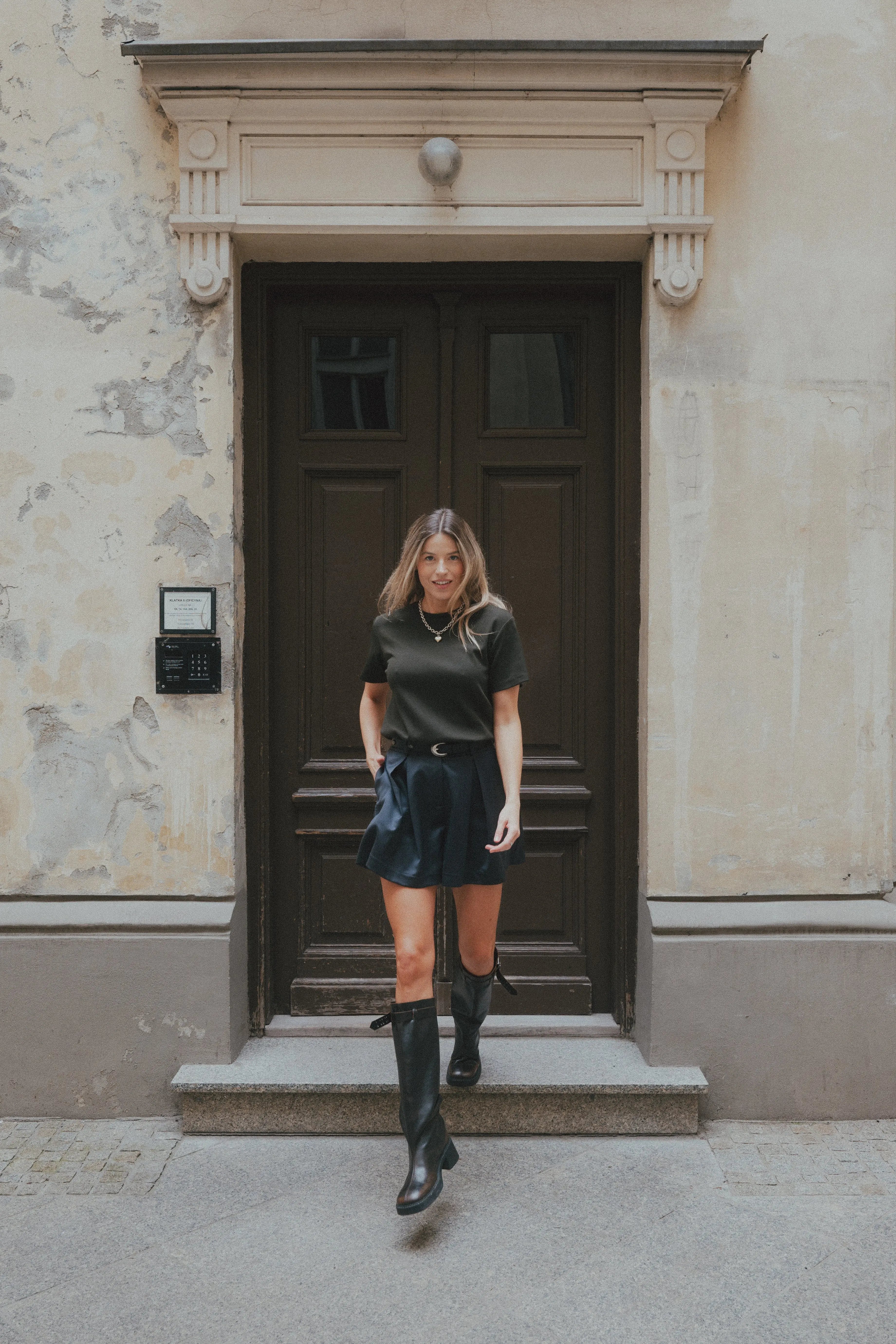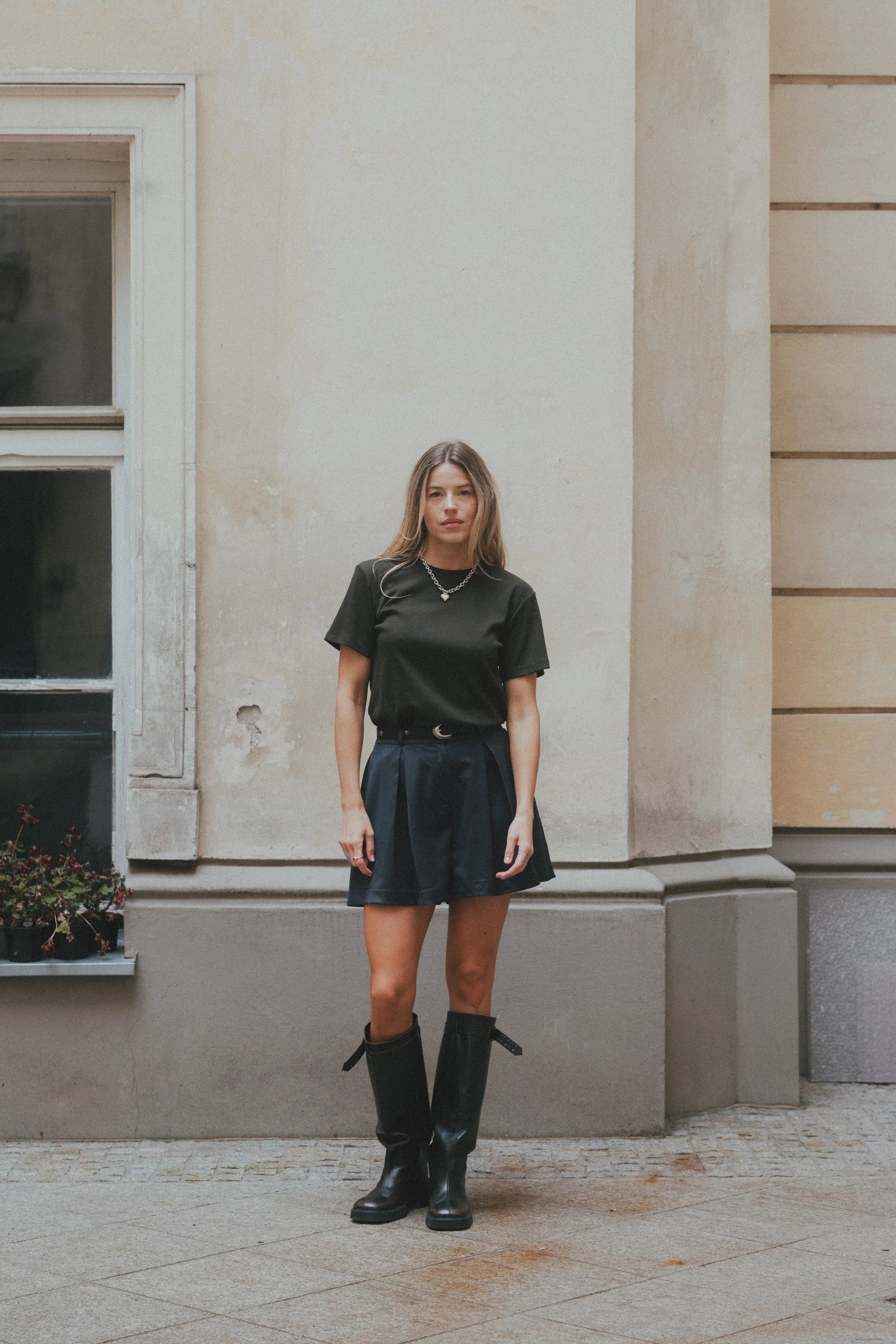 T-shirt No. 1 Forêt to esencja naturalnej elegancji i prostoty. Wykonany z wysokiej jakości dzianiny, zapewnia pełen komfort noszenia i idealne dopasowanie do sylwetki. Jego głęboki, leśny odcień zieleni wnosi do stylizacji świeżość i charakter, doskonale komponując się zarówno z neutralnymi, jak i bardziej wyrazistymi barwami.