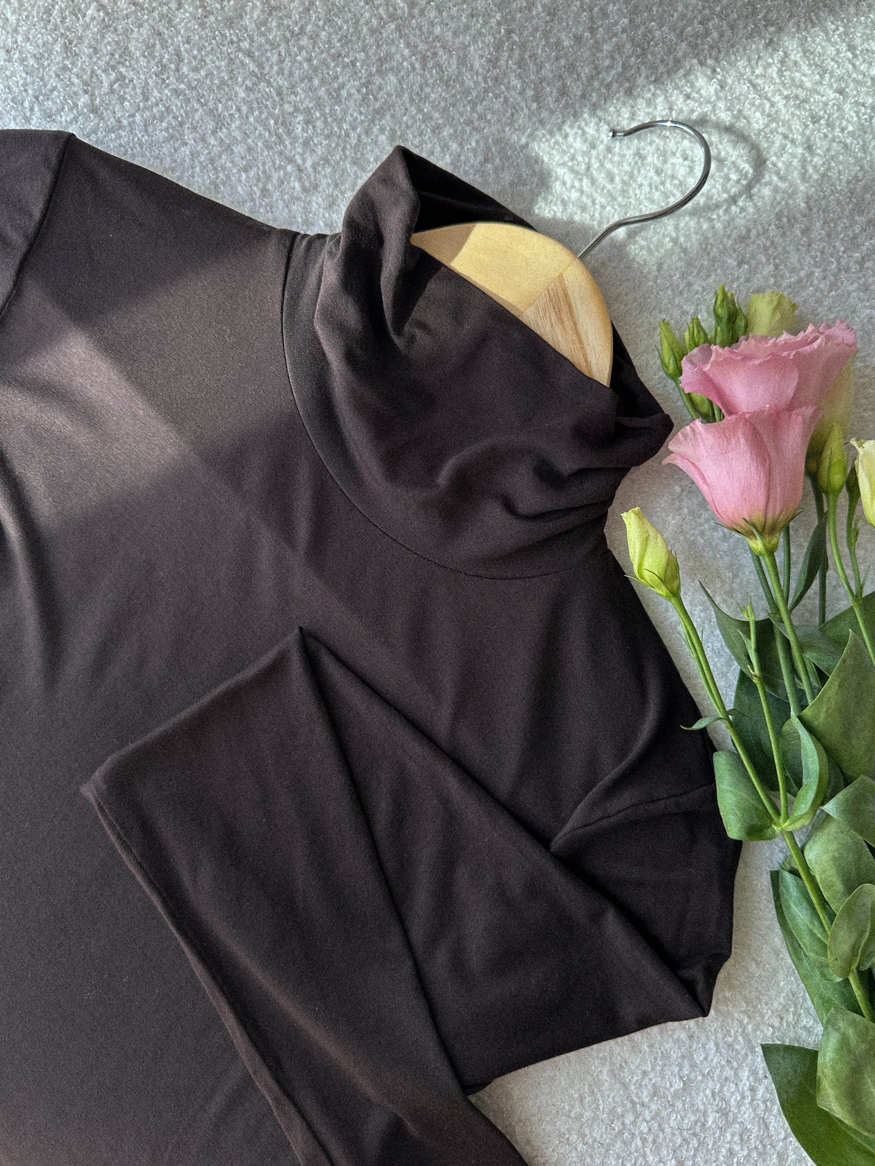 Komfort: gładka, niezwykle miękka i elastyczna dzianina, dopasowująca się do ciała jak druga skóra - Kolor: głęboka ciemna czekolada – szlachetna i ponadczasowa