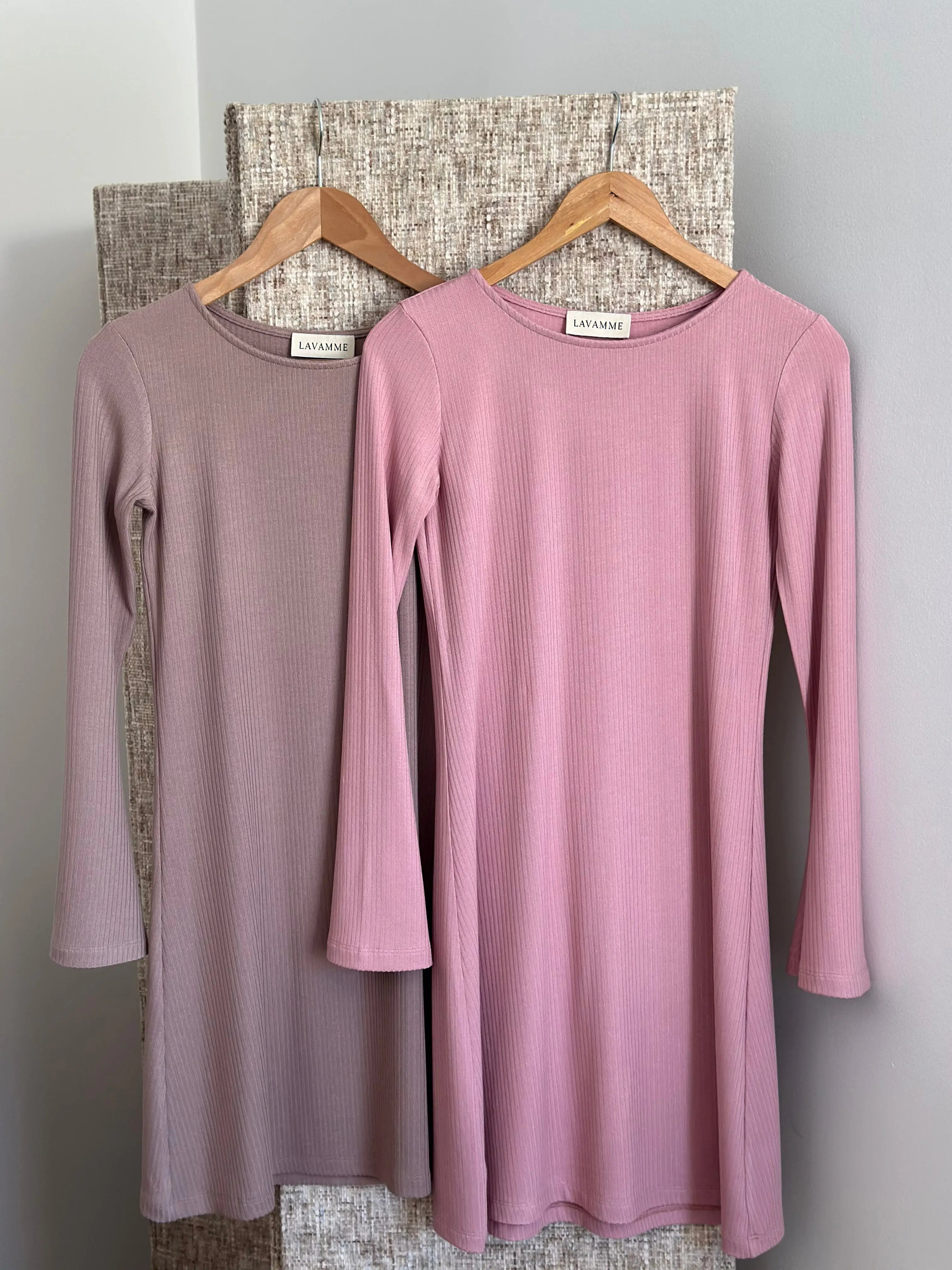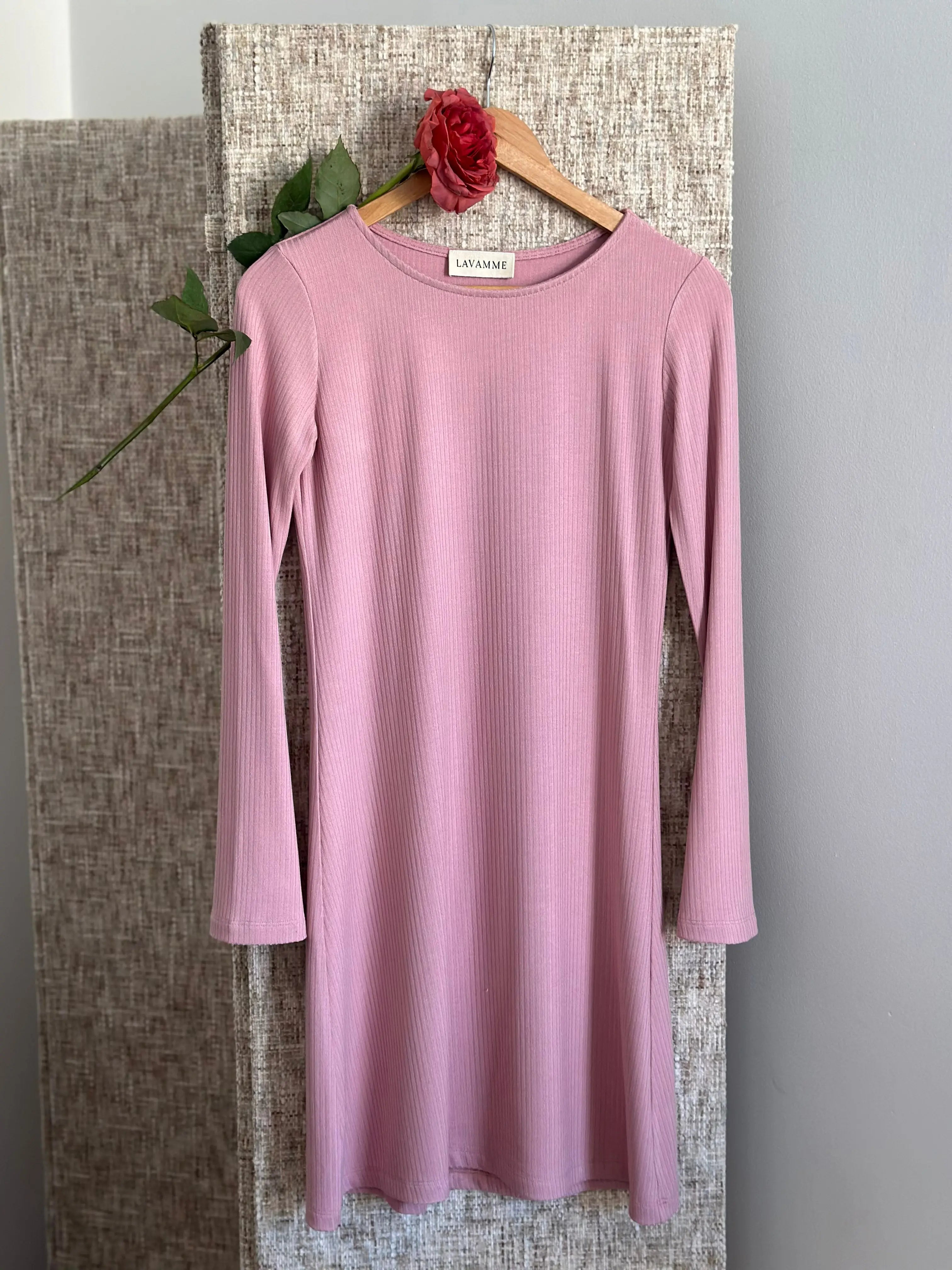 Wyjątkowa sukienka w odcieniu pudrowego różu, inspirowana najdelikatniejszymi różami z Grasse – prowansalskiej stolicy perfum. Łączy dziewczęcy urok z wygodą na co dzień. Jej lekko rozkloszowany krój w kształcie litery A otula sylwetkę z wdziękiem, a rozkloszowane rękawy poruszają się z każdym gestem, jak płatki kwiatów na letnim wietrze. Wykonana z miękkiej, prążkowanej dzianiny, zapewnia komfort i swobodę ruchów przez cały dzień.
