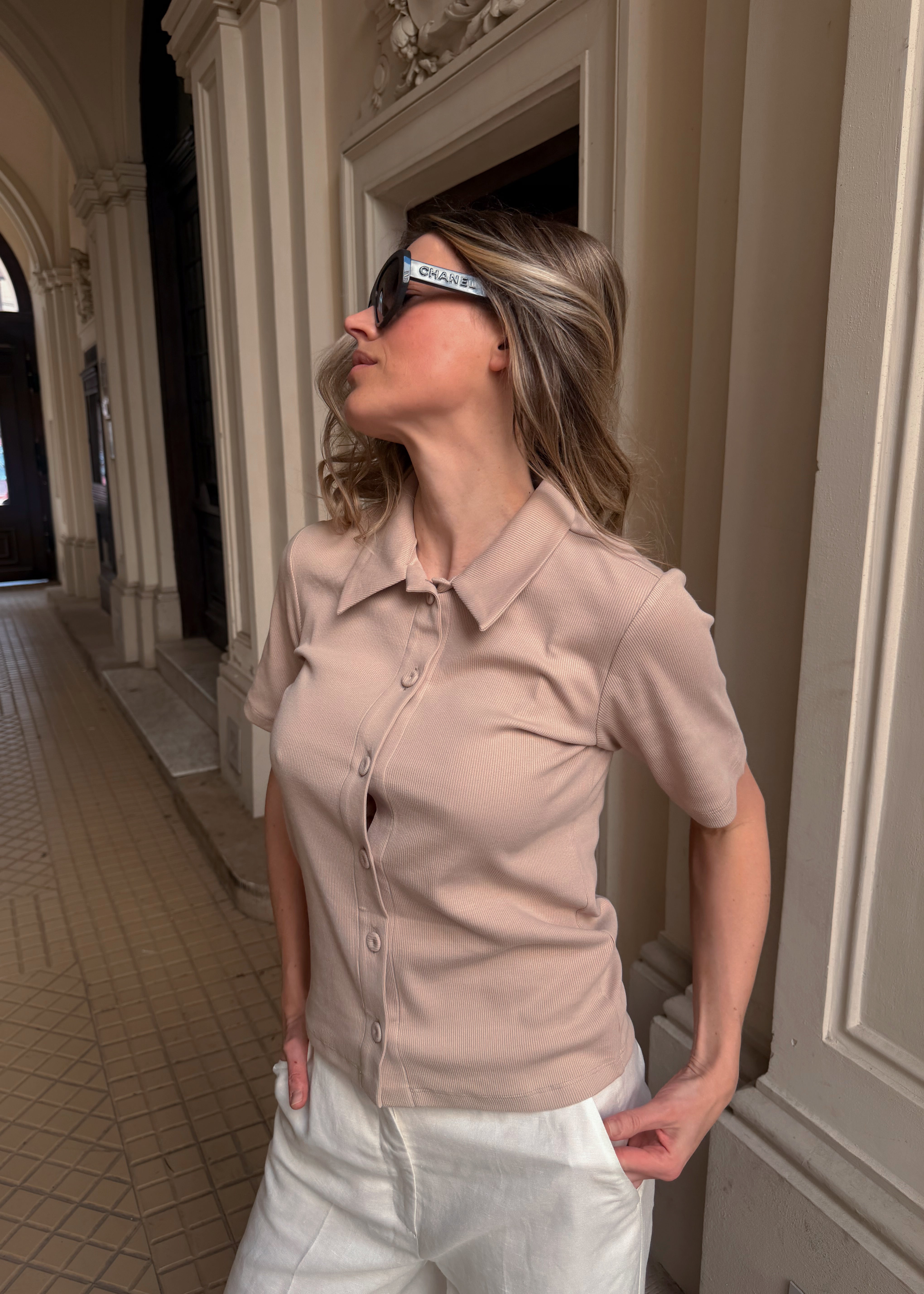 T-shirt No. 2 Sable de Provence to propozycja pełna subtelności i niewymuszonej elegancji. Jego ciepły, neutralny odcień wprowadza do stylizacji spokój i lekkość, doskonale komponując się z bielą, kremami, brązami czy delikatnymi pastelami.