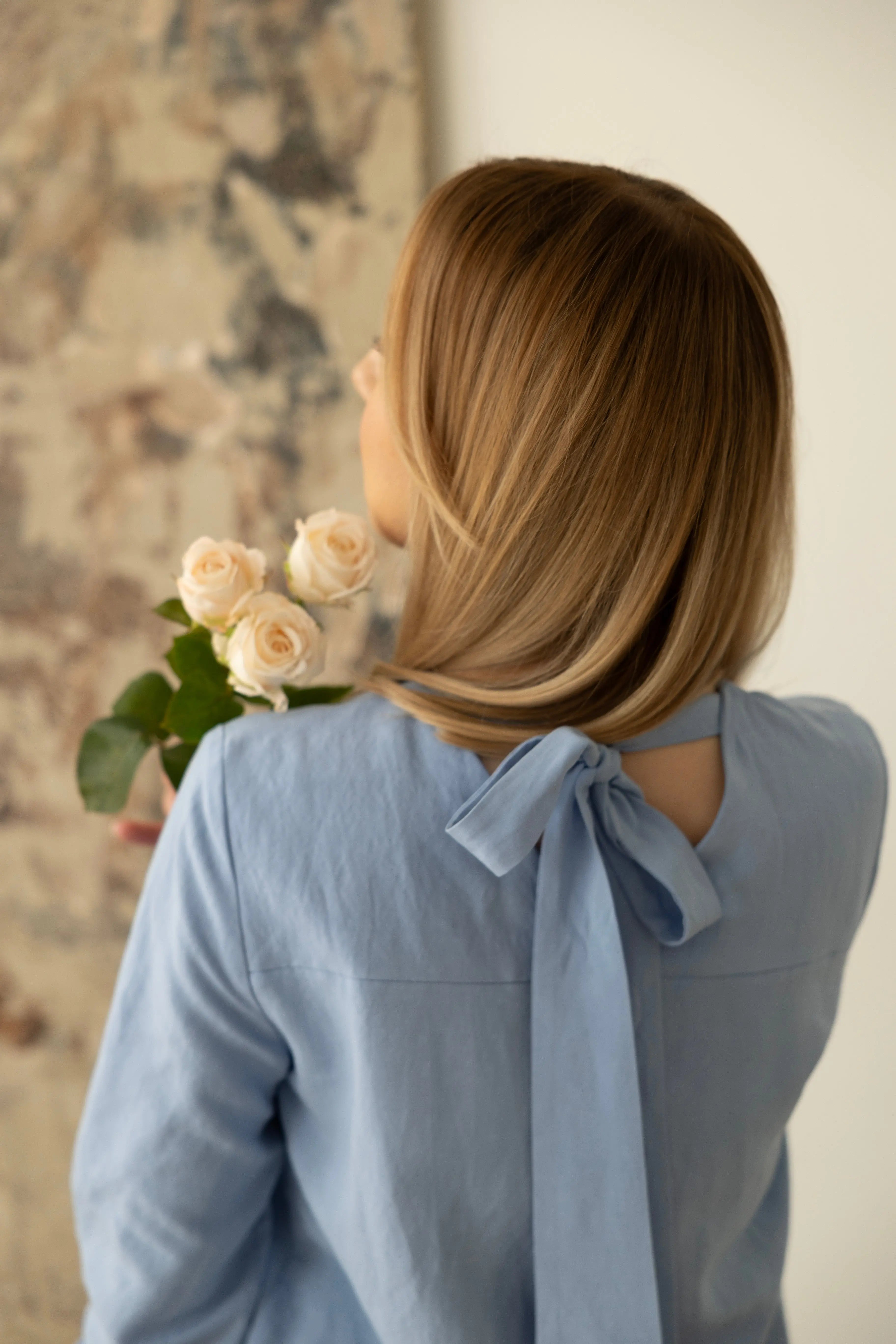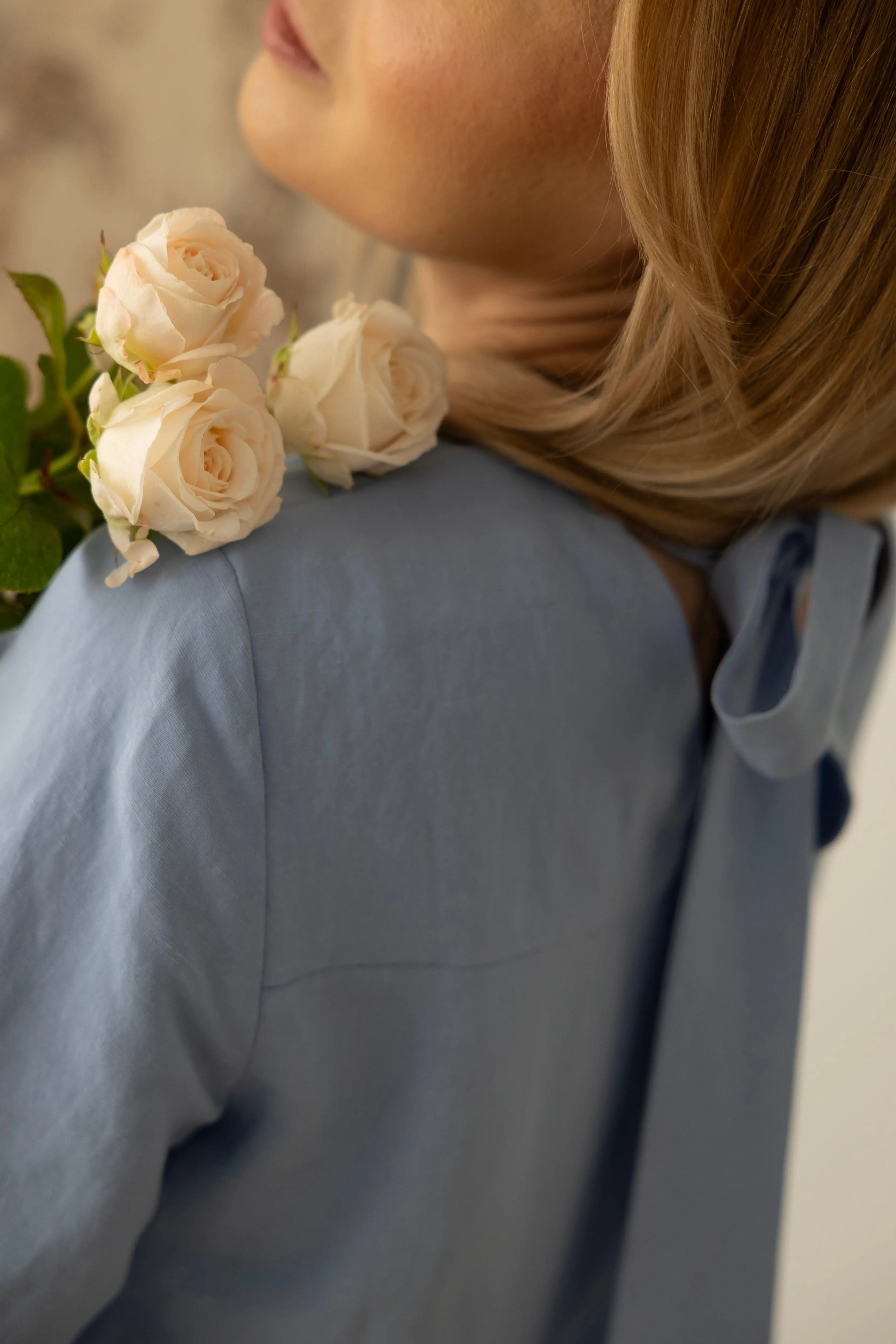 Jak poranek pod błękitnym niebem Prowansji – lekka, subtelna, z klasą. Uszyta z przewiewnej mieszanki lnu i wiskozy, łączy w sobie naturalność z elegancją.