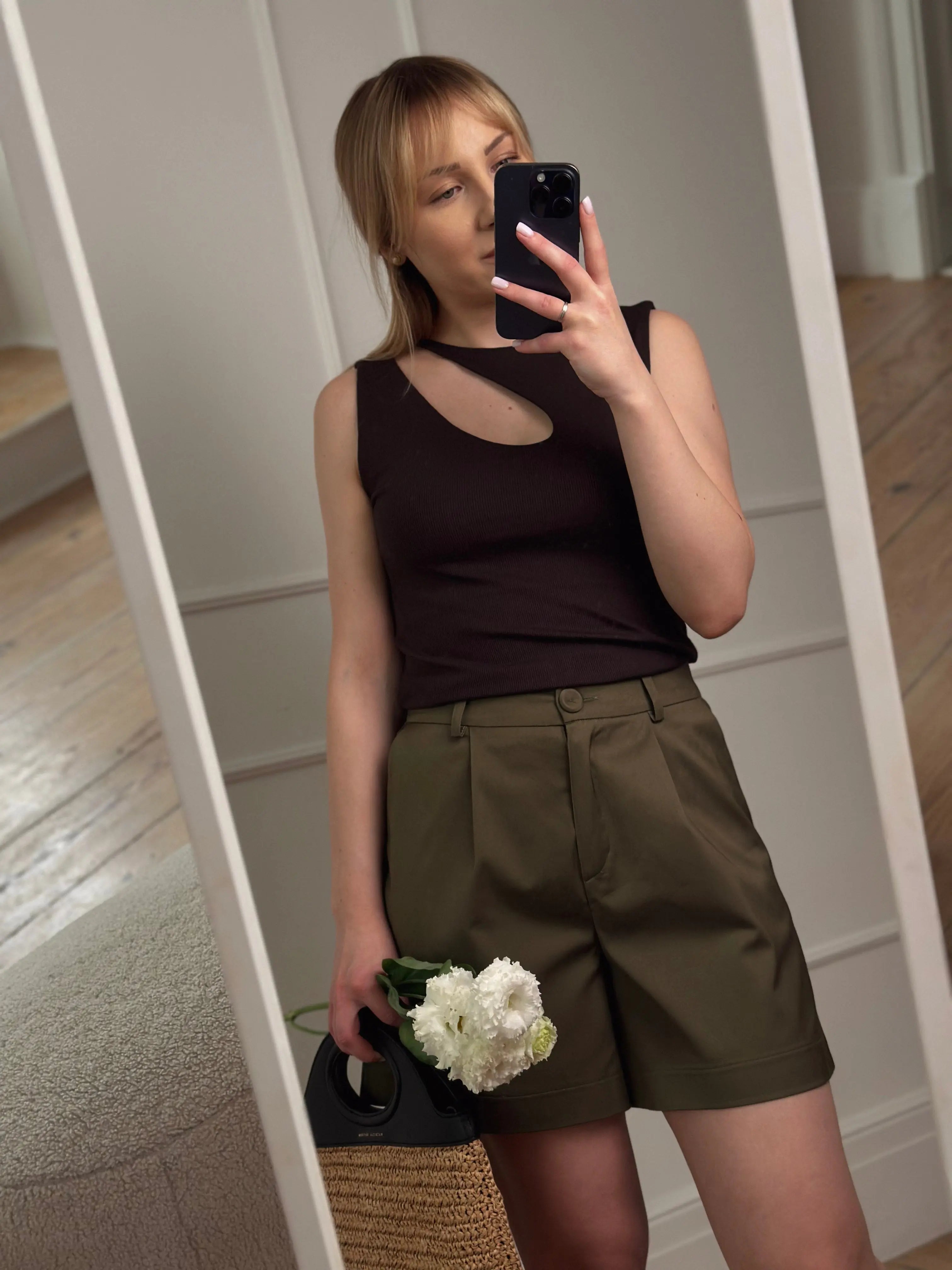 - Kolor: Chocolat– głęboki, elegancki czekoladowy brąz, która podkreśla minimalistyczny charakter topu.